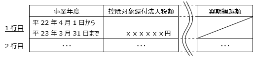 お手数ですが「第六号様式別表二の三」をご確認いただき、対象外である事業年度の控除対象還付法人税額が引き継がれている場合には削除していただきますようお願い致します。
