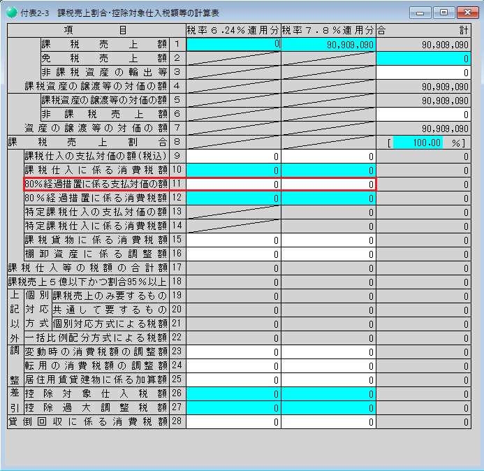 付表2-3(旧税率取引がある場合は付表2-1及び2-2)に直接入力します。